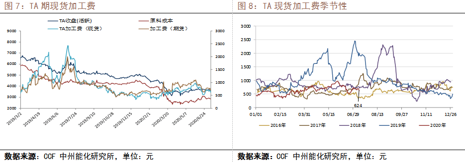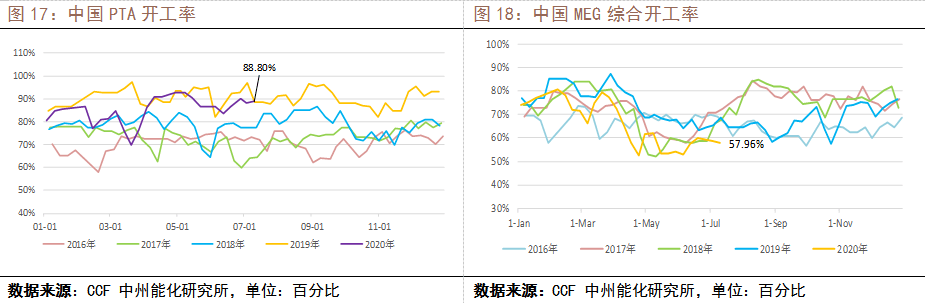 PTA现货内盘均价本周大幅下跌,至周五跌至3475元/吨。TA盘面主力加工差本周震荡收窄,至周五为695。恒力5#一条线125万吨已投产且95%负荷运行,另一条线周末计划试车。开工率较上周小幅上升,新产能基数下供给增量增加。PX-NPT价差本周再度突破新低,最低为136美元,为历史最低水平。