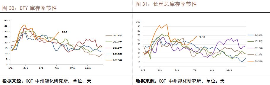 2020年7月1日起,聚酯产能基数上修至6110万吨,新增装置包括:盛虹25万吨(长丝),逸盛25万吨(瓶片),逸锦10万吨(短纤)、仪化20万吨(短纤)。本周三房巷一套20万吨装置开启,同时部分聚酯装置减产,综合来看聚酯负荷窄幅波动,截至本周五聚酯负荷在92%。涤丝产销本周除周中大幅降价促销产销率达到110%-120%外,其余几天均维持清淡。
