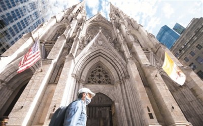 9月20日,行人经过美国纽约圣帕特里克大教堂。新华社记者 王迎 摄