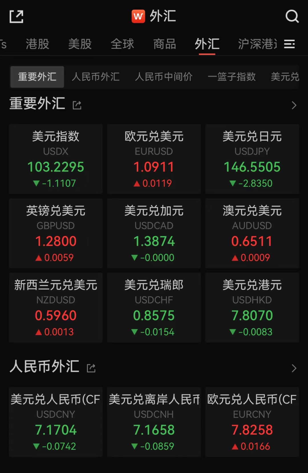 受此影响,周五美元指数大跌,单日跌幅达到1.06%,并创下四个半月来的新低。当天美元对欧元跌1.11%,对日元跌幅达到1.87%。