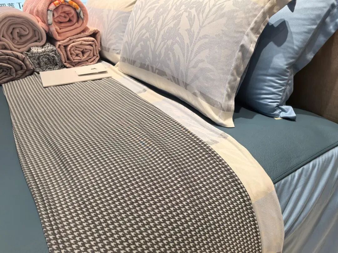 △除了凉席外,盖毯、夏凉被等凉感面料床上用品也在夏天收获了很高的销量。(中国商报记者 于佳鑫/摄)