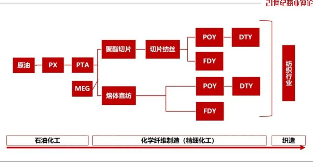 化纤行业处在中游,上游是石油、炼油行业,下游为服装、面料行业。