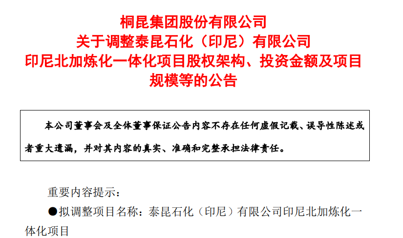 这项打通全产业链的巨额投资项目并不是桐昆单独完成。6月27日,桐昆股份联手同在桐乡的新凤鸣,以及上海青翃,共同启动在印尼北加的炼化一体化项目。