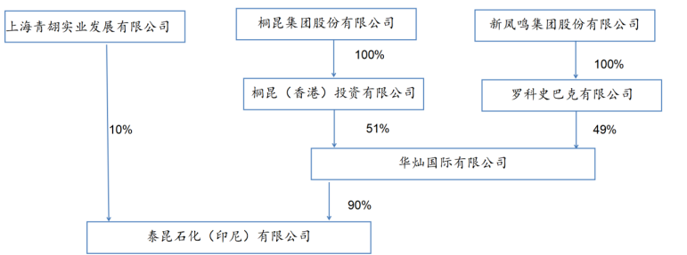 调整后,桐昆股份通过桐昆香港公司持有的华灿国际及鹏皓投资发展有限公司合计持股80%,新凤鸣通过罗科史巴克持股15%,上海青翃持股5%。