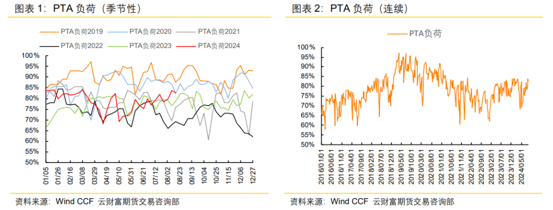 当前情况下,PTA供应整体宽松,PTA负荷本周小幅回落至82.7%,但仍然位于季节性高位运行,PTA产量同样居高不下。