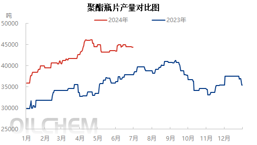 2024年同样是瓶片产能增长的高峰期,2024年1-6月聚酯瓶片累计产量766.33万吨,同比增加23.65%;其中新装置产量释放,海南逸盛60万吨、安徽昊源60万吨、大化105万吨、新疆屯河10万吨、新疆逸普12万吨,供应整体增量明显。