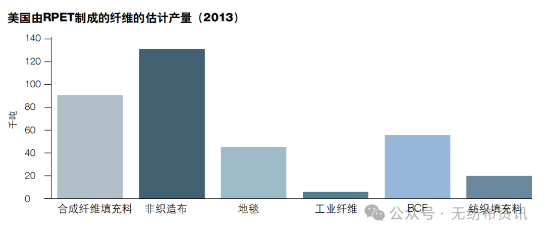 在美国,RPET有十分广泛的应用,有作填充料的短纤、非织造布以及地毯用的纺纱纤维;最终用于服装、家纺或作为BCF织入地毯(膨体变形长丝)的长丝。