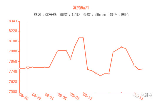 10月18日湖州中磊涤纶短纤价格下调100,半光本白1.4D*38mm自提报价7300,水刺短纤7450。厦门翔鹭涤纶短纤价格下调100,半光本白1.4D*38mm报7500元/吨短途送到。