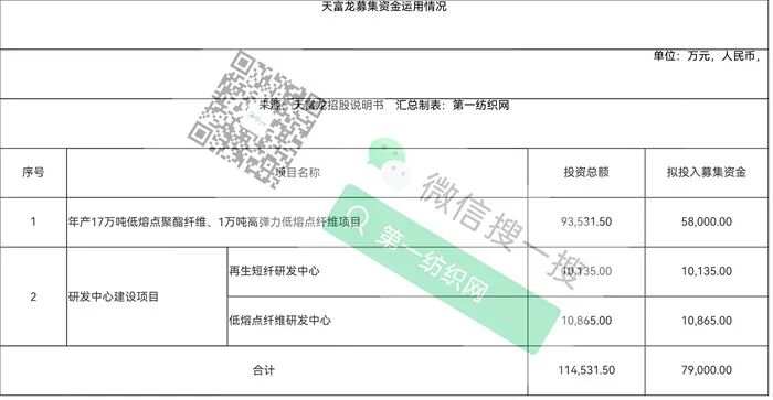 第一纺织网11月3日消息(记者 martin 报道):扬州天富龙集团股份有限公司(以下简称“天富龙”)近日更新主板首次公开发行股票招股说明书(申报稿),公司拟在上交所主板公开发行股票的数量不超过1.2亿股,预计投资总额11.45亿元,其中拟投入募集资金7.9亿元,所募集资金将用于年产17万吨低熔点聚酯纤维、1万吨高弹力低熔点纤维项目和研发中心建设项目。