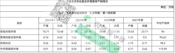 天富龙的年产能为58.60万吨,依托柔性化生产线以及高性能产品的研发,形成了门类丰富的差别化复合纤维产品,并且成为再生有色涤纶短纤维细分行业的领先企业,能够充分满足客户的定制化产品需求。近年来,公司业务实力不断提升,行业地位持续巩固。根据中国化学纤维工业协会统计数据,2021-2023年,公司汽车内饰用有色涤纶短纤维和低熔点短纤维的销量在国内市场排名蝉联第一。