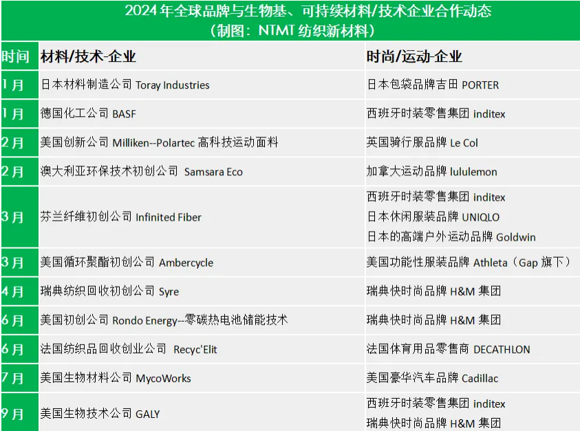 下一代材料已经从一个小众概念发展成为全球领先品牌可持续发展战略的关键组成部分。如果以降低碳足迹为线索,时间为轴,我们不难发现,已经有越来越多的时尚/运动公司与新材料/技术公司展开合作。