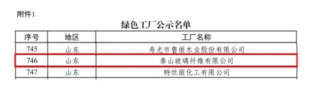 泰山玻纤入选国家级绿色工厂!