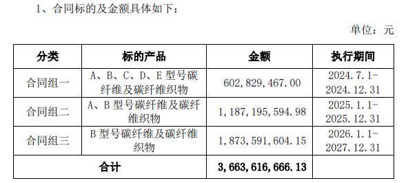 碳纤维研习社悉,国内高性能碳纤维龙头企业--威海光威复合材料股份有限公司(以下称“光威复材”)今天发布公告,其全资子公司威海拓展纤维有限公司与客户A签订了价值 36.636 亿元的《物资采购合同》,为公司今年业务的完美收官和25年业务的良好开局奠定了坚实基础。