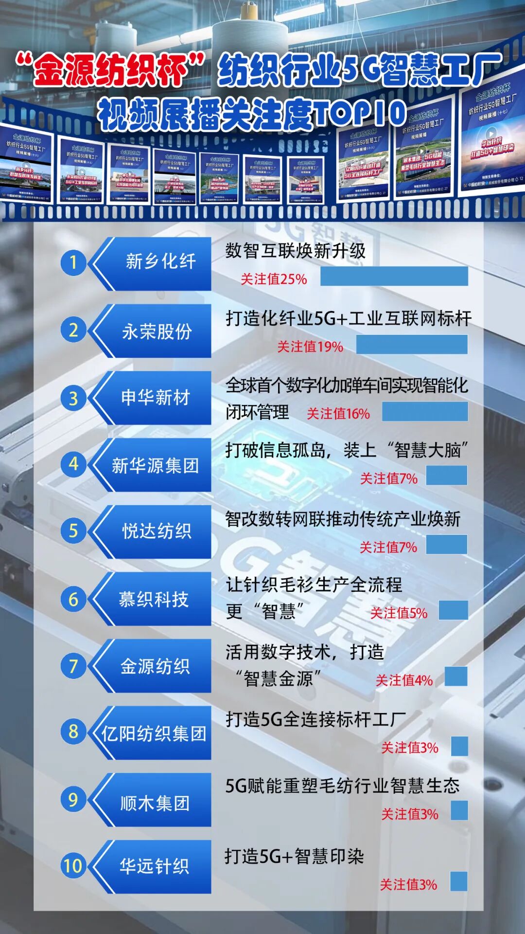 揭晓 | “金源纺织杯”纺织行业5G智慧工厂视频展播关注度TOP10都是谁?
