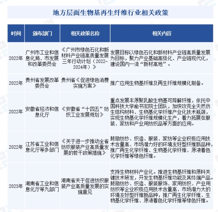 2022-2023年各地对生物基再生纤维的政策,图源智研咨询