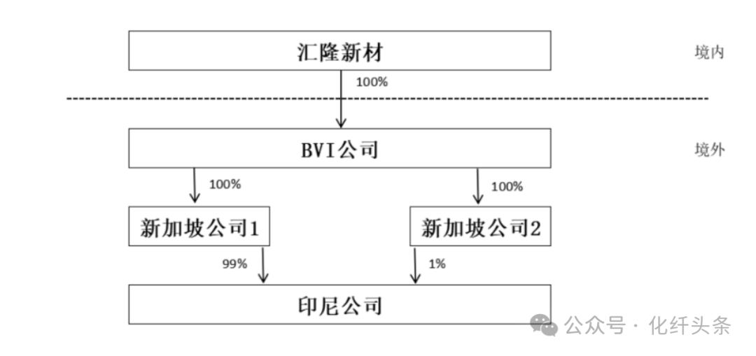汇隆新材拟使用自有资金或自筹资金,通过全资子公司GWILL International Investment Co.,Ltd.(简称“BVI公司”)及孙公司,在印度尼西亚投资建设年产3万吨再生着色纤维和7万吨原液着色纤维项目。