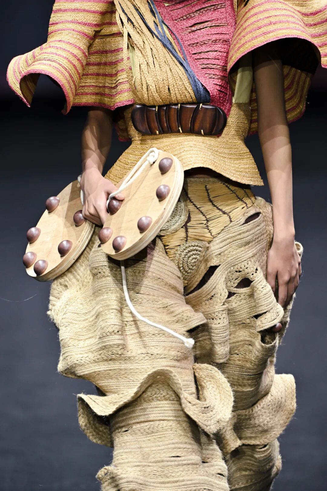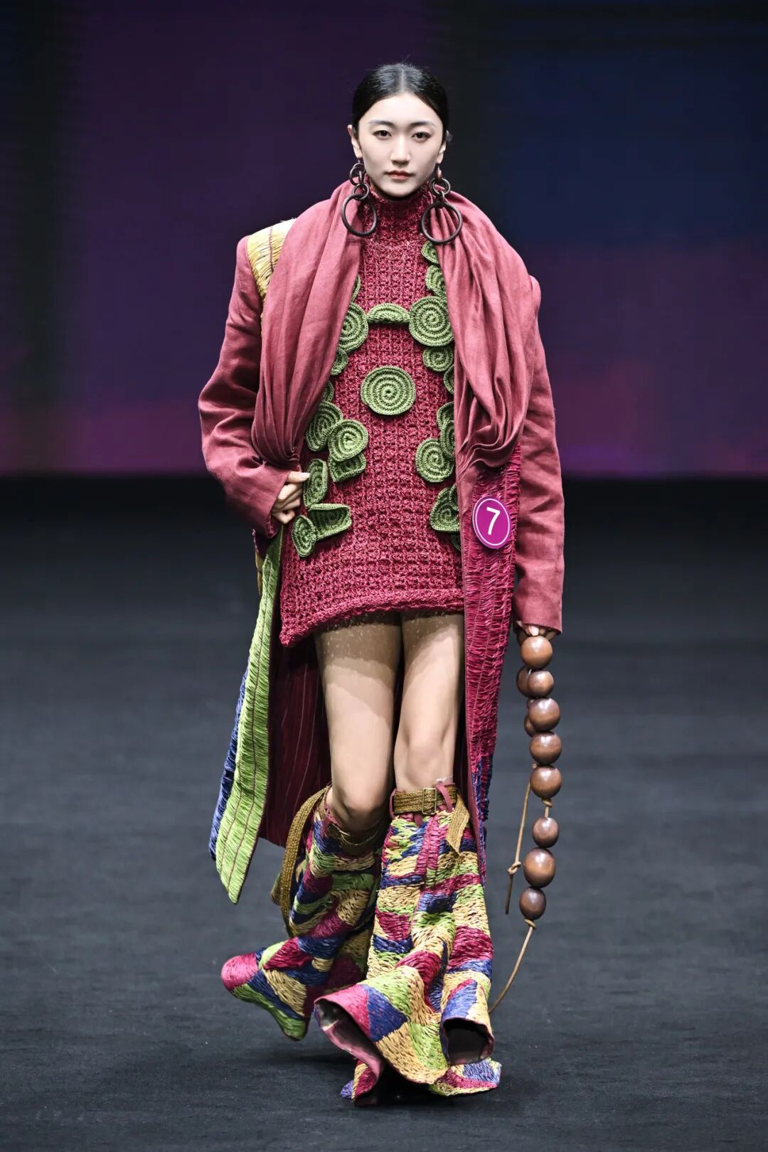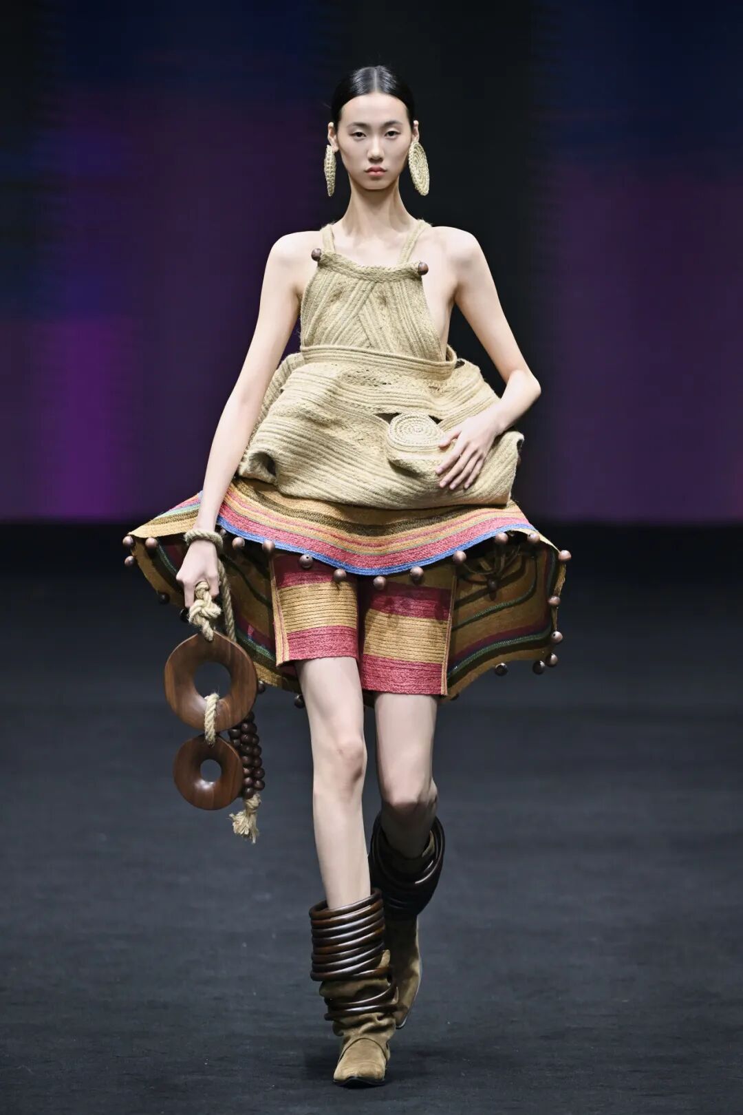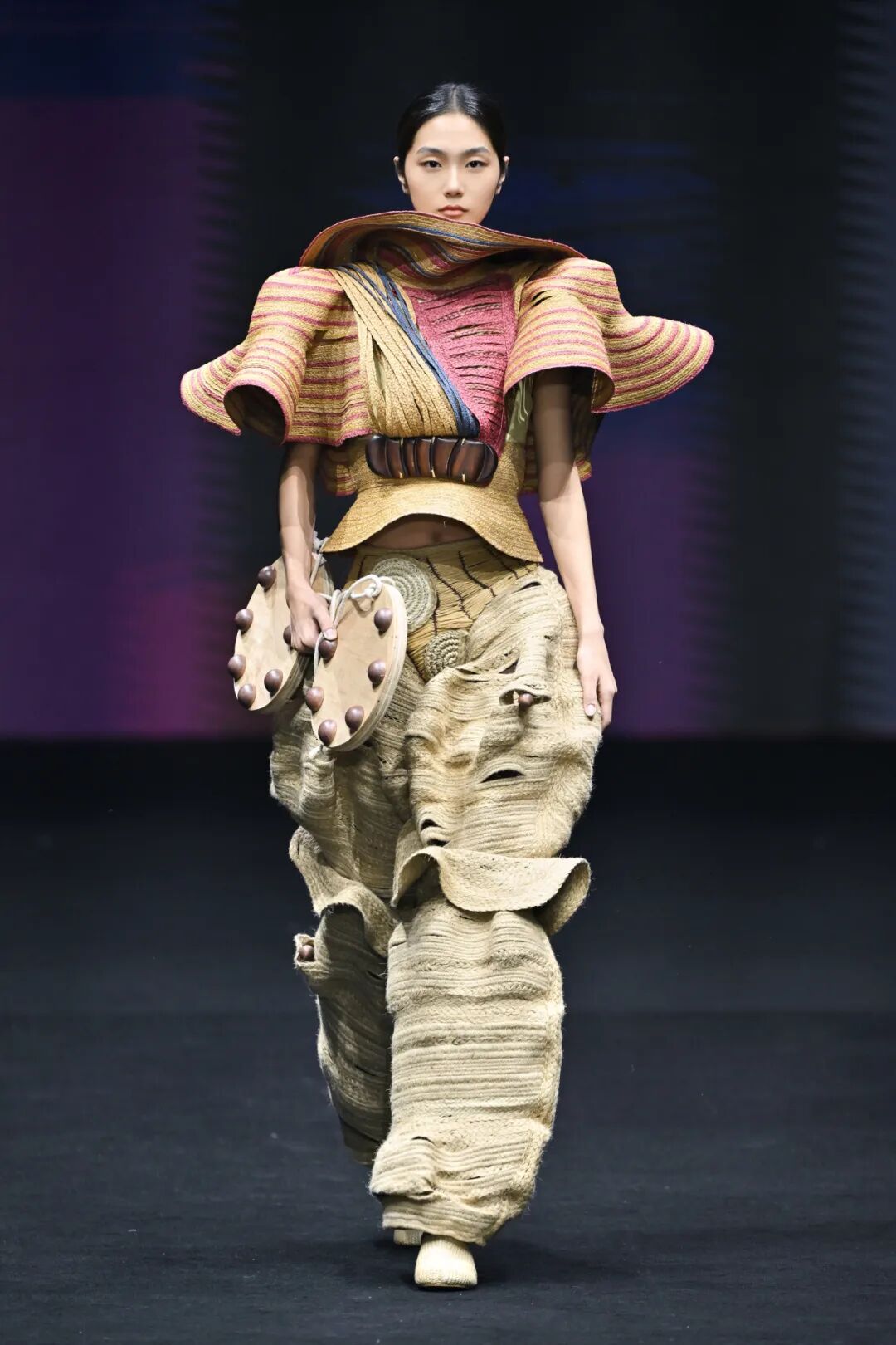 评委们一致认为,这些创作者的设计逻辑成熟且完整,他们敏锐地将目光聚焦于传统文化中“小而美”的具象元素,鲜明地展现出各自突出优势,成功将跨界材料融入服装设计,完成创意向商业市场的无缝转换。这些作品深刻体现了“零浪费”可持续理念,设计师通过将废弃布料重塑为裂织布,对行李编织袋进行二次创作,回收工厂与家庭闲置衣物,以及在快递纸箱和外卖包装中研发新材料。科技应用拉满时尚张力,有的选手运用超轻黏土塑造赛博格机甲形态,以3D打印笔勾勒独特纹样,有的选手创新采用绿色环保PLA、TPU及玉米秸秆基材料,3D打印呈现非对称结构的智能鳞片面料。来自海外国家及地区的设计师,更是将他们熟悉的本土文化与中国艺术无缝契合。