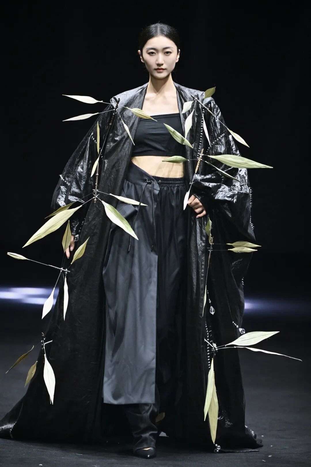 第十二届“大浪杯”中国女装设计大赛金奖获得者、如今设计界炙手可热的设计新星黄斯赟带着最新系列——“大浪杯”孵化设计师动态时装发布秀,再次回到大赛T台。这是数件嵌入机械装置的动态交互时装艺术作品,手工竹节蜻蜓与叶片状的翅膀在动态机械装置的驱动下,在空间中围绕身体划出流转弧线,仿佛置身于虚实变幻间,展现设计师一直以来探索的人工秩序与自然灵性交互的动态美学,热烈的掌声久久不散。